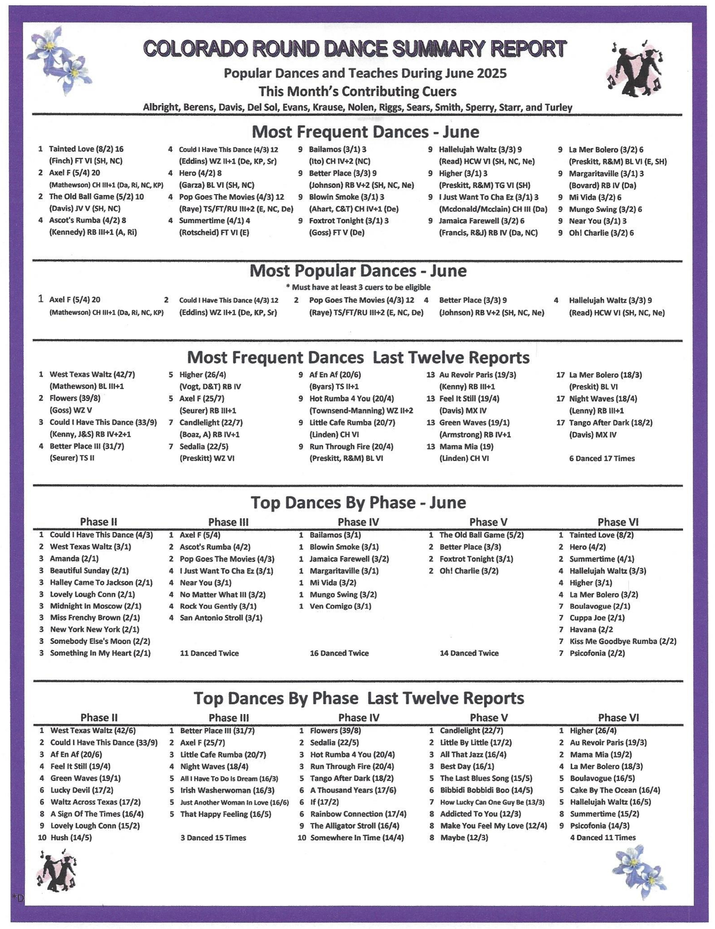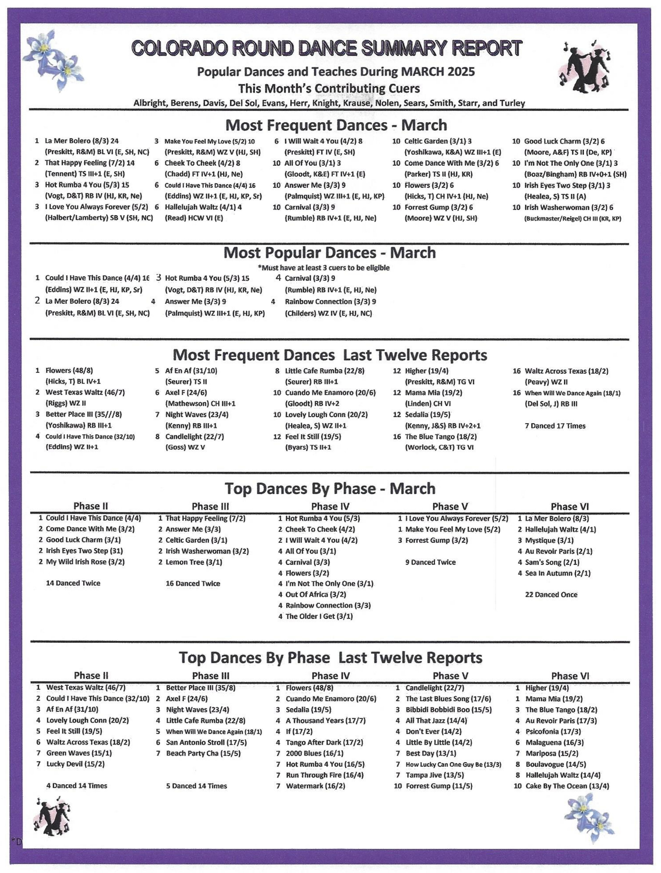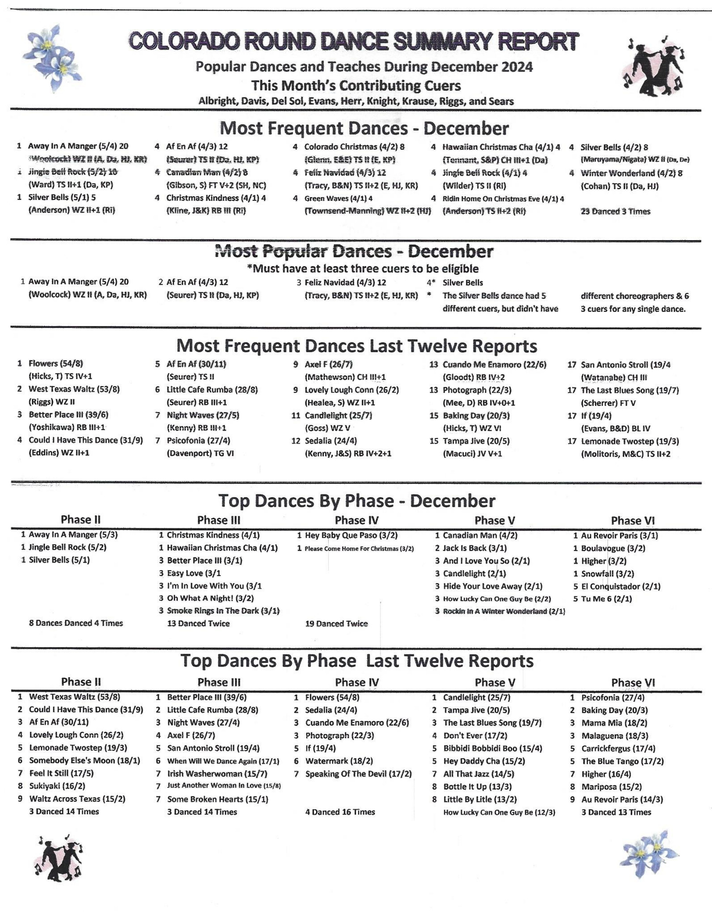 The cue sheets for the new dances presented at the Gala are available here. Scroll through the Schedule to find them all.