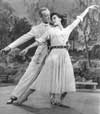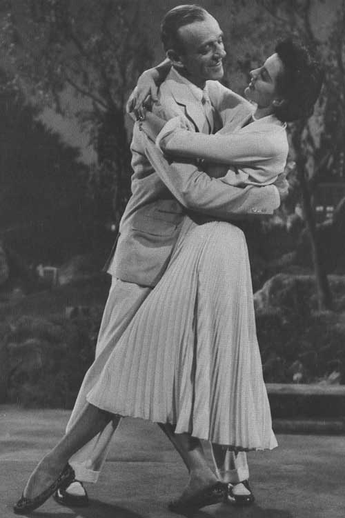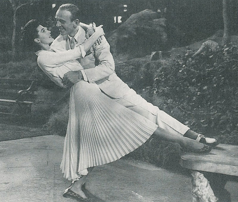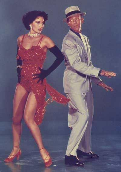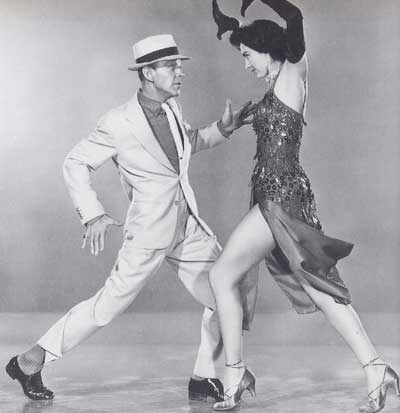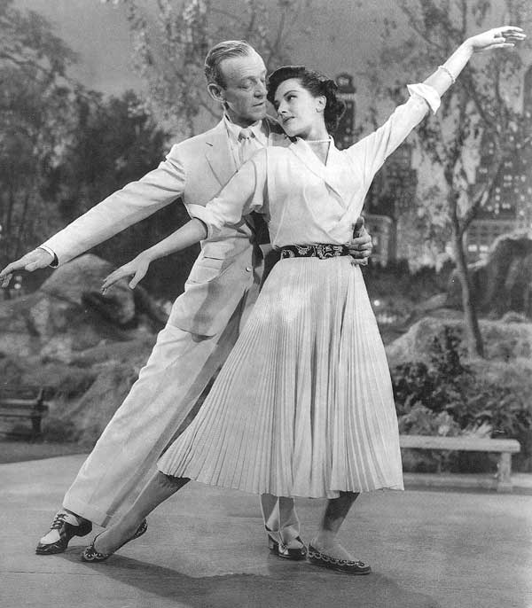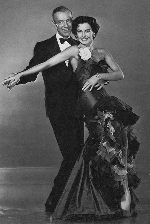 Fred is dancing with Cyd Charisse. Notice their angled bodies and